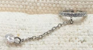 三線鑲鑽單支全純銀耳窩夾/銀(G9440)(CLIP)